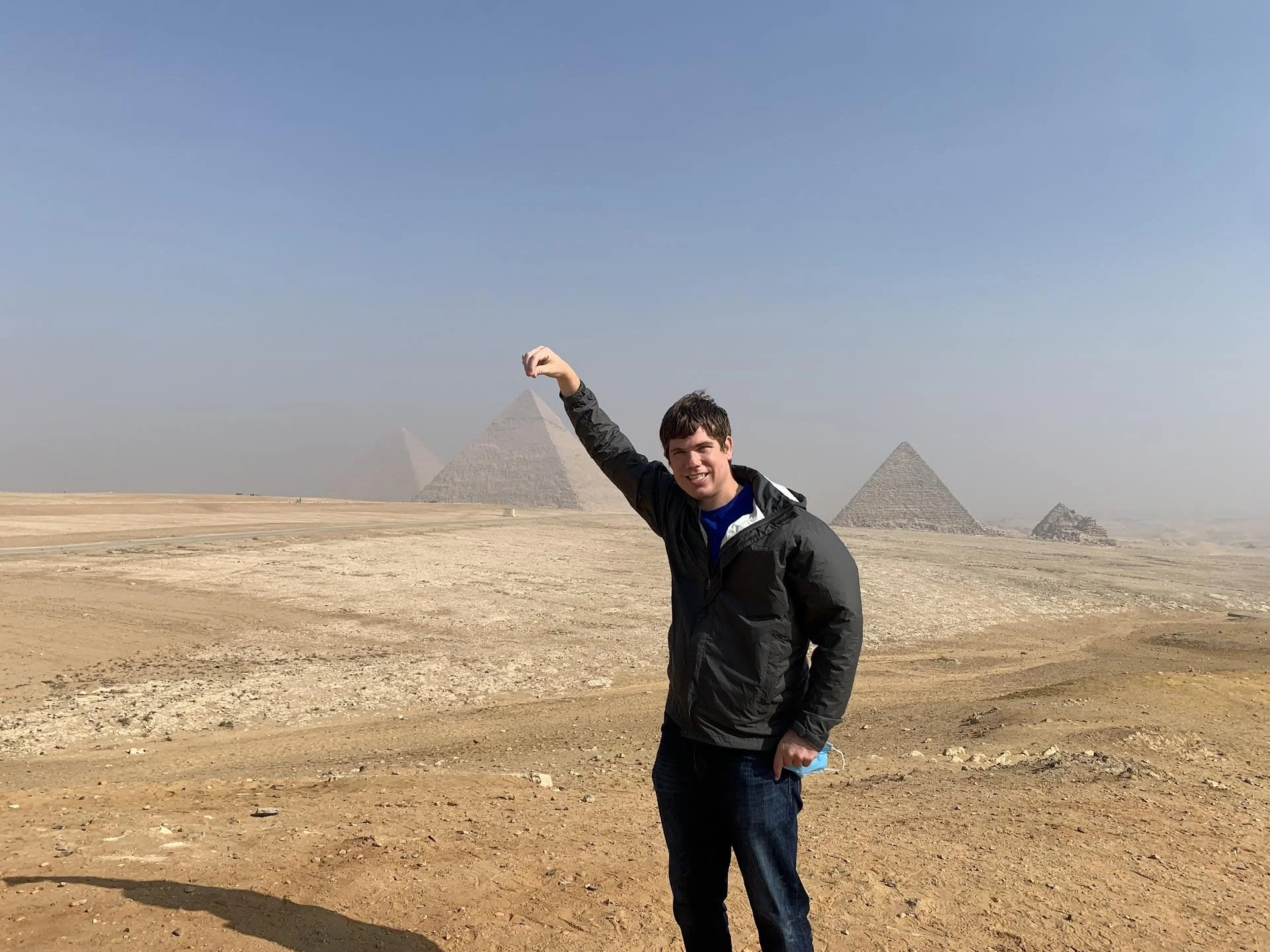 We climbed up the blocks and entered the pyramids. We have a few videos that show what the experience is like. It’s a little claustrophobic, but we wouldn’t trade it for the world. Due to COVID, it was not very crowded. The guards, allowed us to take pictures by ourselves because no one else was in the grand chamber.